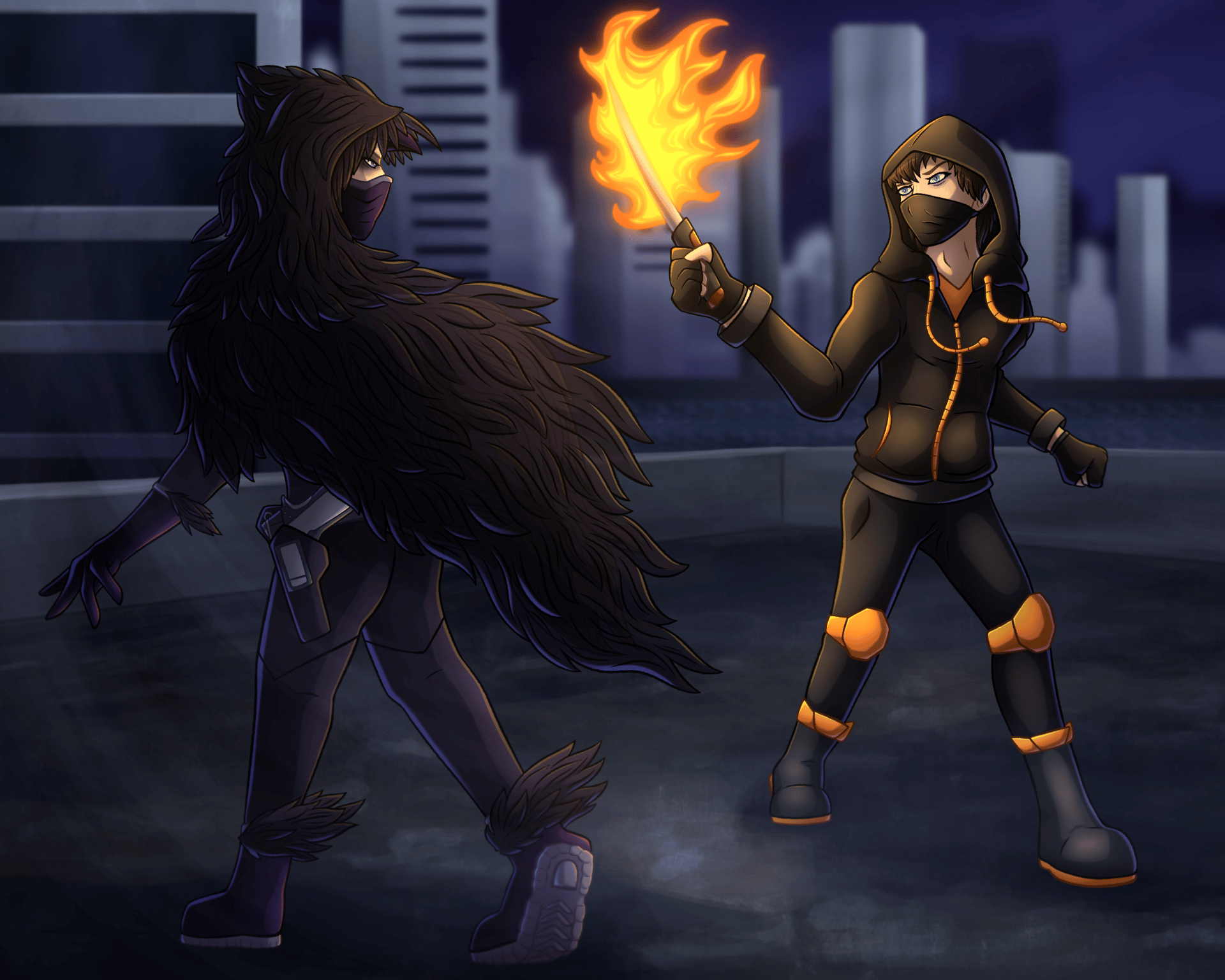 Here’s some incredible art done by my sister, Isabel! The piece features the main protagonist, Matt, fighting the antagonist.